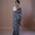 Handwoven soft mulberry silk jamdani saree on grey base with dull gold borders